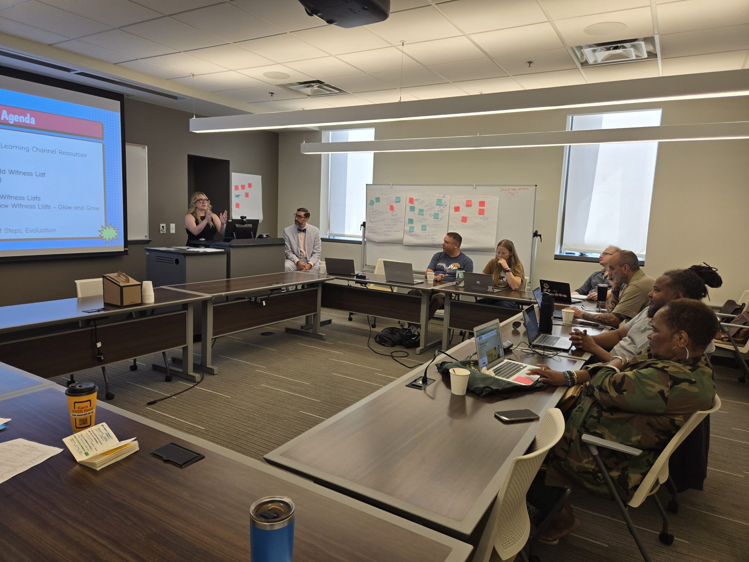 On July 30 – August 1, our civic education team “Learning by Hearings” welcomed high school U.S. History and Social Science teachers to the Levin Center offices for a three day teacher collaboration workshop. The group brainstormed new lesson plans and reviewed existing materials for the program in preparation for the 2024/2025 school year. We were thrilled to welcome the team and can’t wait for the new resources to be tested out in their classrooms.